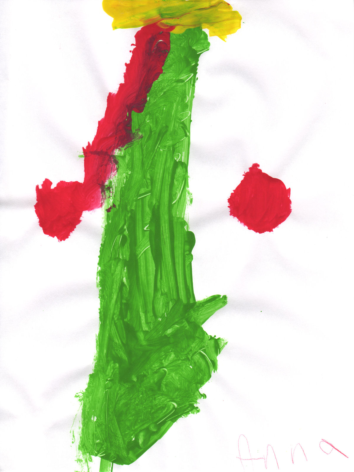 | Anna is seven and in first grade. She can print her own name! She chose finger paints for her picture. Very bright colors. | |